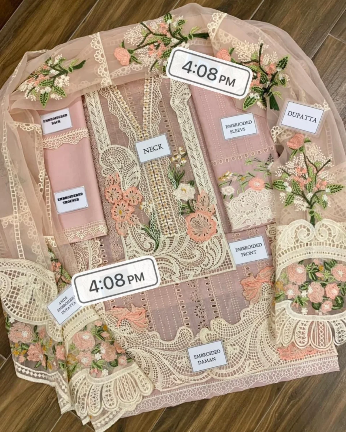 Front with fully Heavy Embroidered Neck with fully Heavy Embroidered light & left Daman Embroidered boarder with Embroidered chak patti