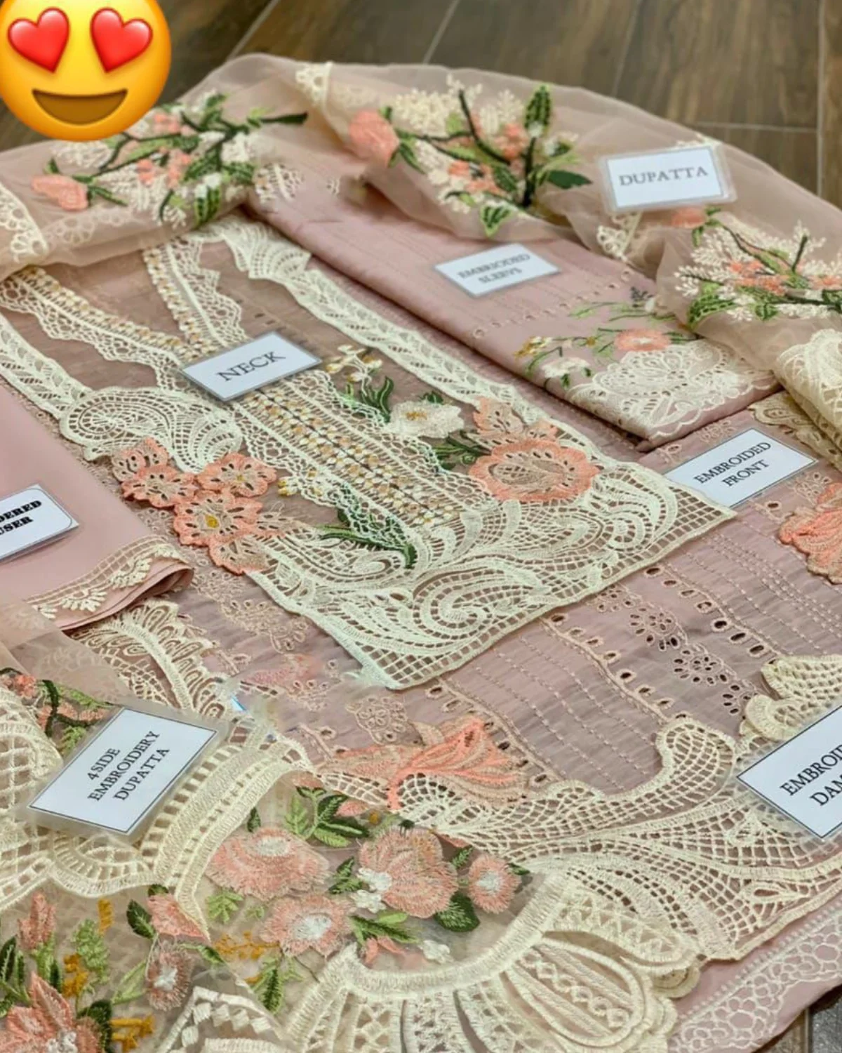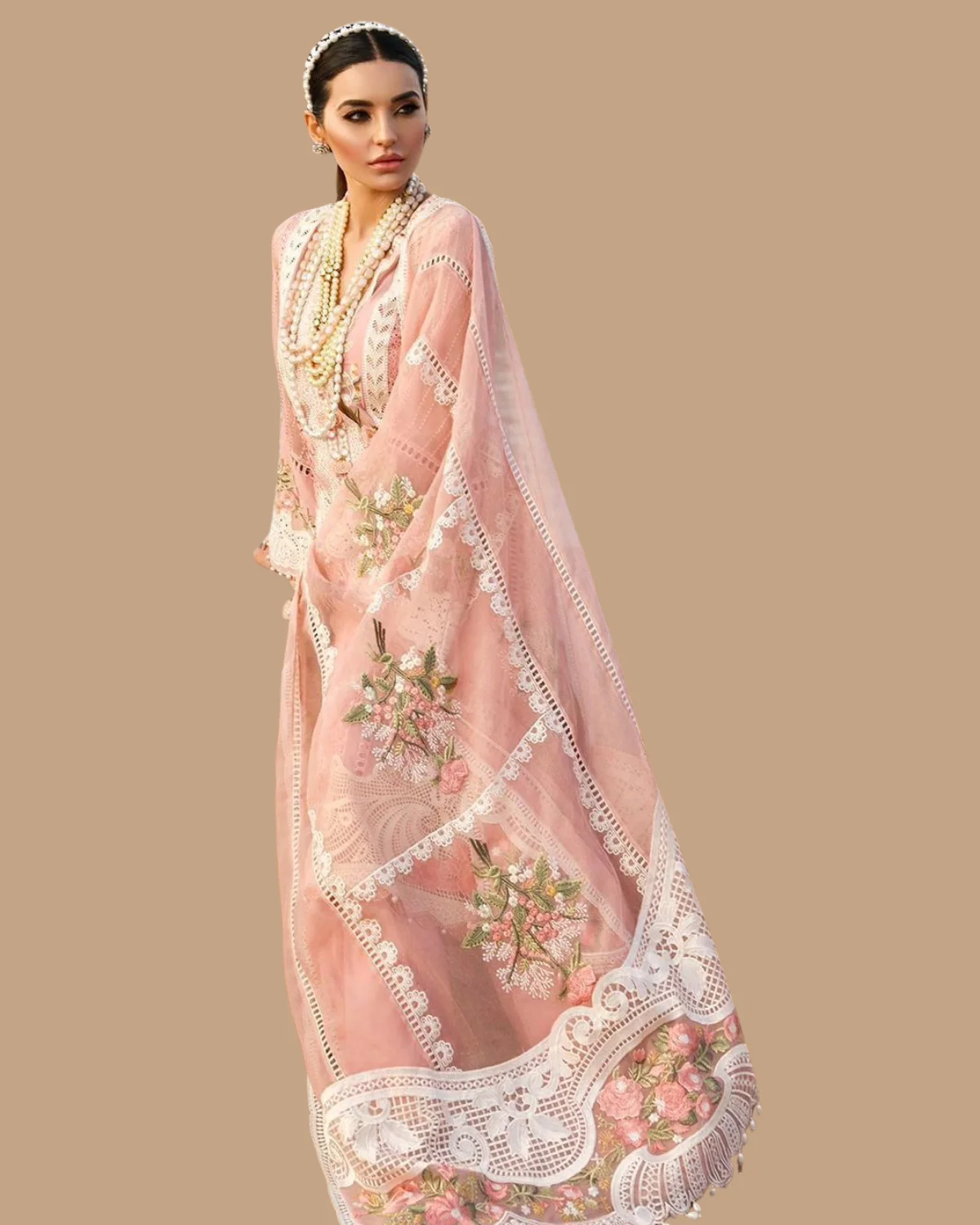 Organze Fully Heavy Embroidered dupta with 4 side embroidered lace attachment with 2 side fully heavy embroidered pallou &attachment